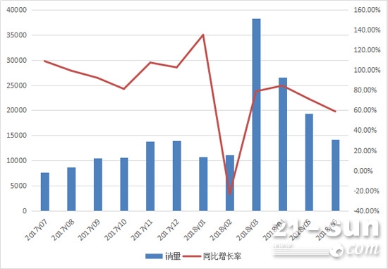 上半年挖掘機銷量突破12萬臺 逼近歷史紀錄 時間:2018-08-10 105字號: 2018年6月,納入統(tǒng)計的24家主要挖掘機制造企業(yè)共計銷售各類挖掘機1.4萬多臺,同比增長58.8%,銷量連續(xù)第二個月創(chuàng)下歷史同月新高。2017年7月至2018年6月挖掘機月度銷量情況今年上半年,挖掘機累計銷量突破12萬臺,同比增長60%。上半年12萬臺銷量距離2011年的史上最高上半年銷量僅有7000余臺差距,全年銷量創(chuàng)下新高的可能性越來越大。從品牌競爭情況看,6月份三一銷量達到3100余臺,占總銷量22.2%;卡特彼勒以2000余臺銷量位居次席,徐工挖掘機銷量約為1600臺,排第三;銷量在千臺以上的還有斗山和柳工。今年上半年,三一、卡特彼勒、徐工、斗山四品牌累計銷量均突破1萬臺,四品牌銷量占總銷量55.5%;柳工、山東臨工、小松和日立建機分列5~8位,前八品牌銷量占總銷量78.3%,行業(yè)集中度繼續(xù)呈現(xiàn)上升趨勢。從噸位上看,2018上半年。13噸及以下)、中、大挖(30噸及以上)銷量分別約為5.87萬臺、4.39萬臺和1.76萬臺,所占比重依次為48.8%、36.5%和14.6%。進一步細分,5≤a≤6和19.5<a≤24.9噸位區(qū)間挖掘機最受青睞,銷量分別為2.89萬臺和2.82萬臺,二者合計占到總銷量一半左右。從區(qū)域銷售情況看,6月份山東省與江蘇省挖掘機銷量突破1000臺,安徽、四川、河南三省銷量在800臺以上。今年上半年,江蘇省與山東省挖掘機銷量在伯仲之間,均為8500余臺,四川與河南省銷量在7000臺以上,累計銷量超過5000臺的還有安徽、湖北、湖南和貴州。上半年挖掘機區(qū)域銷量情況(累計銷量3000臺以上省區(qū))6月份,挖掘機出口1723臺,同比大幅增長143.7%;今年上半年,挖掘機累計出口約8900臺,同比增長110.5%。2017年7月至2018年6月挖掘機月度出口情況上半年,小、中、大挖分別約出口2600臺、4600臺和1700臺,其中19.5<a≤24.9區(qū)間共出口3600余臺,占出口總量四成左右。從單機型銷量表現(xiàn)看,上半年,三一SY75C-10以5500多臺銷量遙遙領先,銷量前十機型三一占了五款,徐工兩款,斗山、卡特彼勒與山東臨工各有一款。每品牌各列一款如下:三一SY75C-10、徐工XE60D、卡特彼勒305.5E2、斗山DX55-9C、山東臨工E660F。挖掘機購機詢價,就上鐵臂商城!2018年上半年,中國工程機械商貿(mào)網(wǎng)鐵臂商城累計接到挖掘機詢單近3萬條,獲重點關注的機型有:三一SY75C-10、卡特彼勒307E2、三一SY60C、沃爾沃EW145B Prime以及徐工XE60D等。版權聲明:本文屬中國工程機械商貿(mào)網(wǎng)(www.21-sun.com)原創(chuàng),若需轉載務必以超鏈接的形式注明出處,嚴禁任何有悖原文的修改。